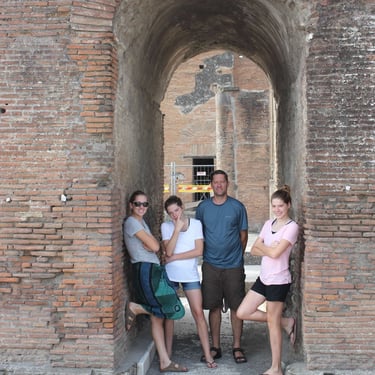 From Charles De Gaulle we immediately left town, heading for Italy. Our plan was to do France last. We did camp on the way but our first city in Italy was Genoa. We only stayed long enough to camp the night, but we do have some fun pictures that show bars blocking the way to the beach! From there we went to Rome. Lots of sites including the Vatican, Colosseum, Trevi Fountain (the girls were big Lizzy McGuire fans), Pantheon just to name a few. If you want to feel accomplished, wear your apple watch to track your steps! Then it was on to Naples and Pompei. We stayed in THE most crowded campsite I have ever stayed in. To put up our tent, we were encroaching on the neighbors site. Luckily they had an RV and took it all in stride. It was on to Salerno so that we could drive the Amalfi coast to Sorrento. Then back to Rome and on up to Pisa where I of course made the girls take pictures holding up the Tower. My favorite campsite is somewhere between Naples and Pisa on the coast and I hope to find it again someday as I can’t remember what it is called or where it was located.